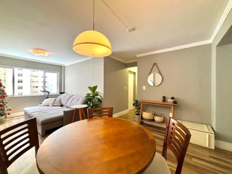 contém: sala para dois ambientes, 2 quartos, cozinha com armários, área de serviços, 2 banheiros (social e de serviço), quarto de empregada.
