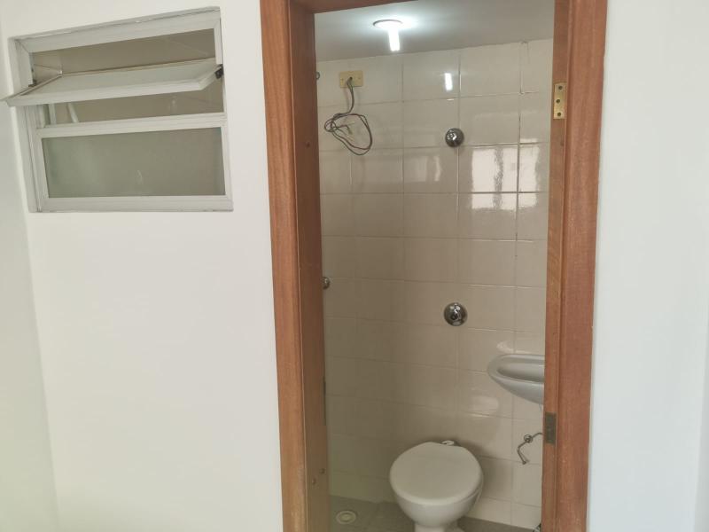 banheiro social com armário e box em vidro