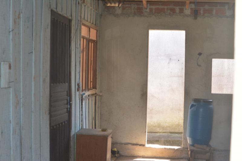 Terreno parte ideal contendo uma casa de madeira de dois dormitórios, sala, cozinha, bwc social, cozinha e fundos.